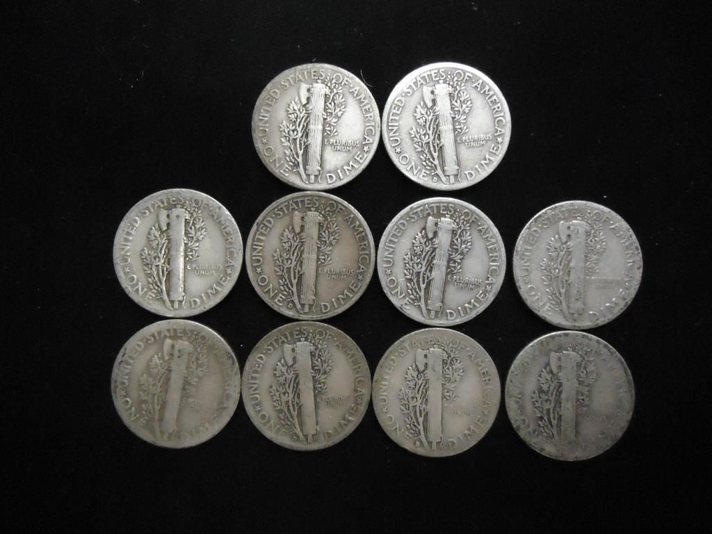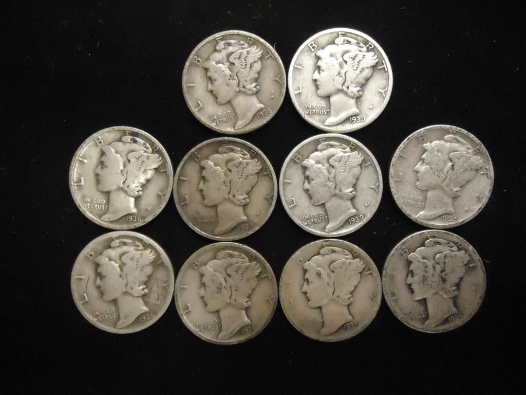 10 ASSORTED 1930'S MERCURY DIMES