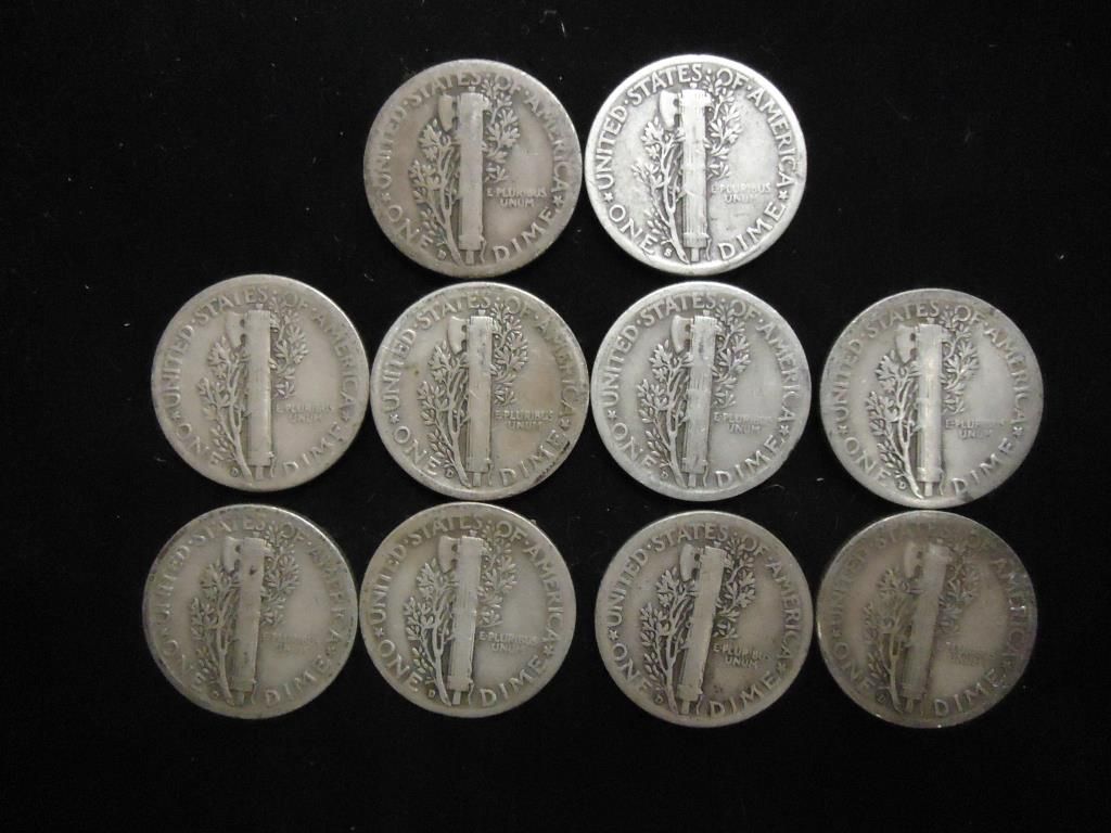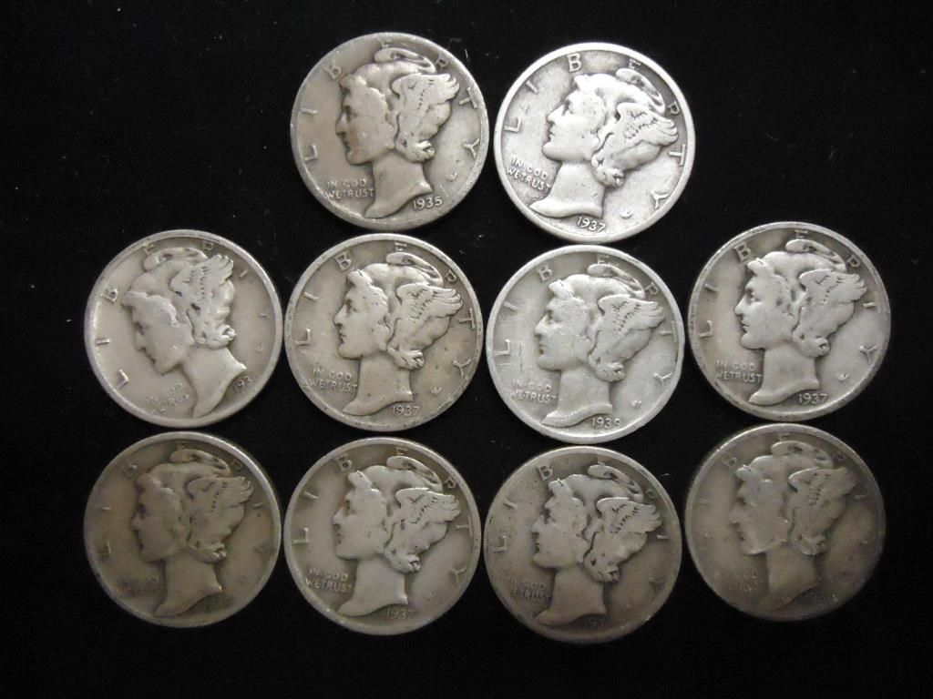 10 ASSORTED 1930'S MERCURY DIMES