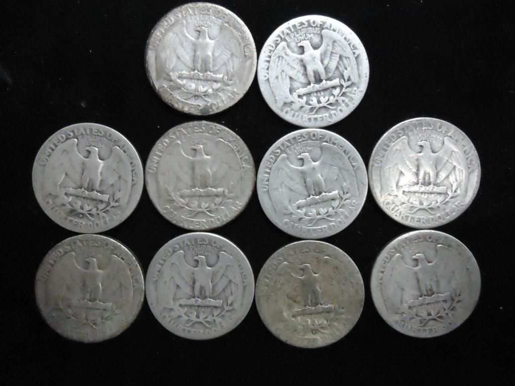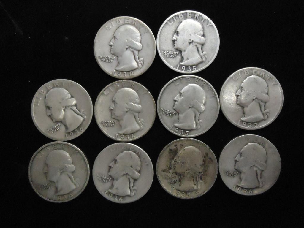 10 ASSORTED 1930'S WASHINGTON SILVER QUARTERS