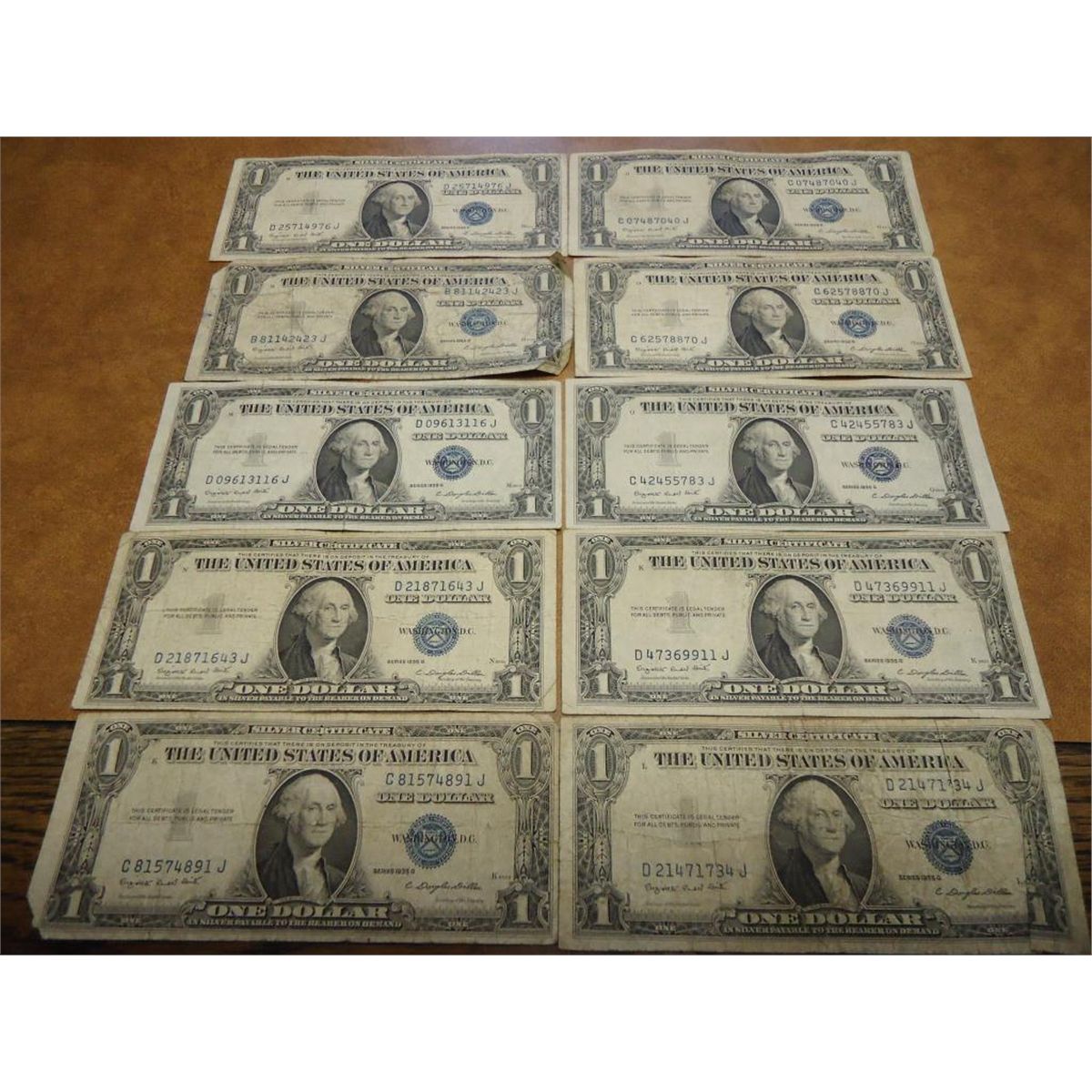 10 ASSORTED 1935 $1 SILVER CERTIFICATES