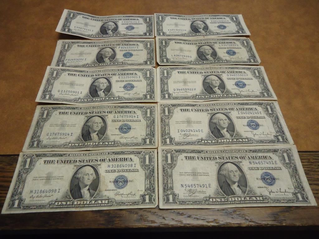 10 ASSORTED 1935 $1 SILVER CERTIFICATES