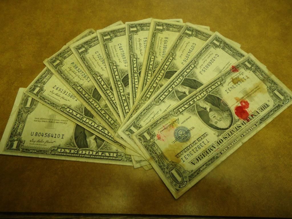 10 ASSORTED 1935 US $1 SILVER CERTIFICATES