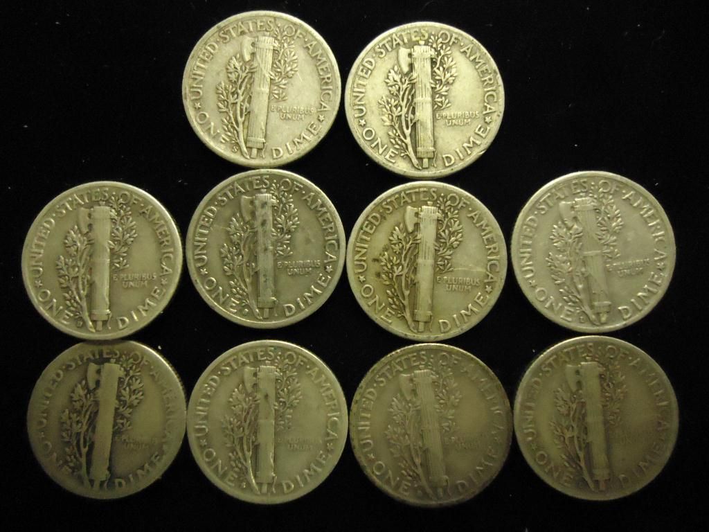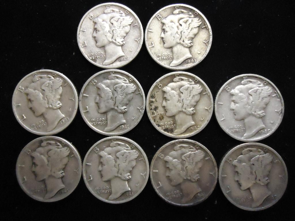 10 ASSORTED 1940'S MERCURY DIMES