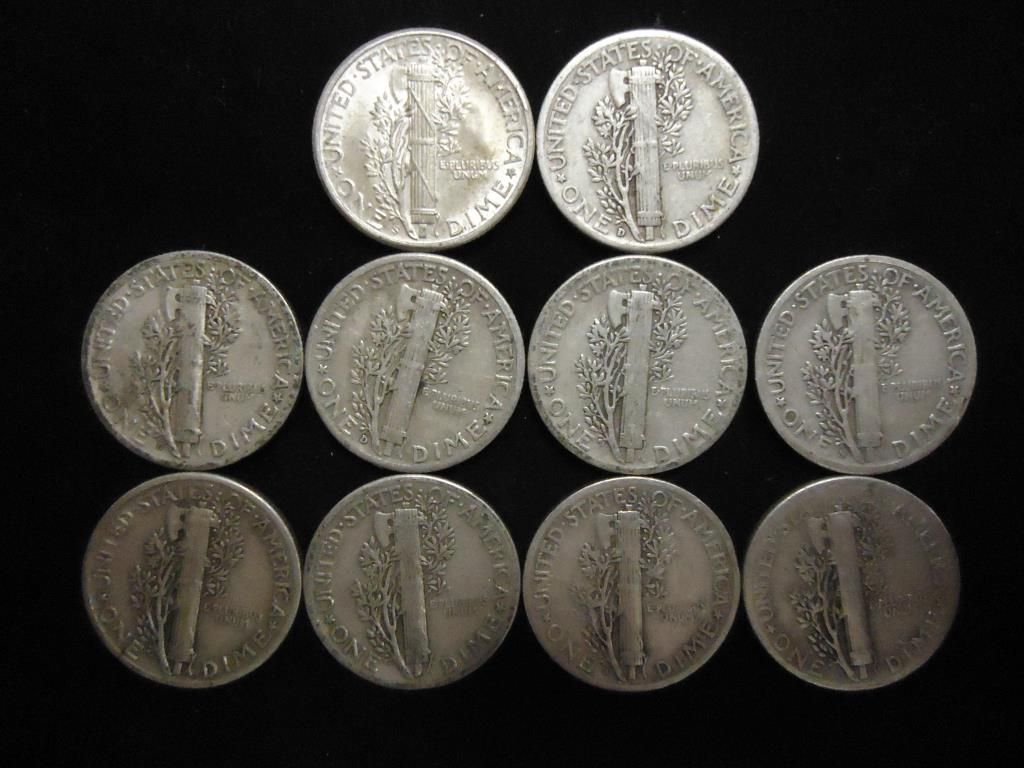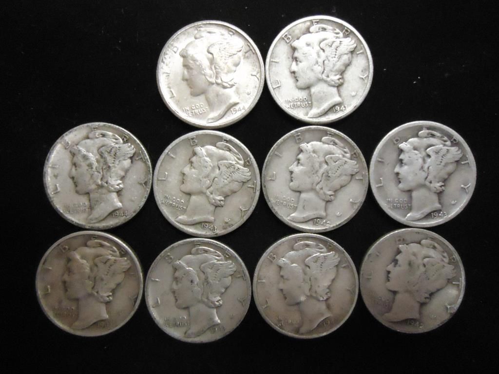 10 ASSORTED 1940'S MERCURY DIMES
