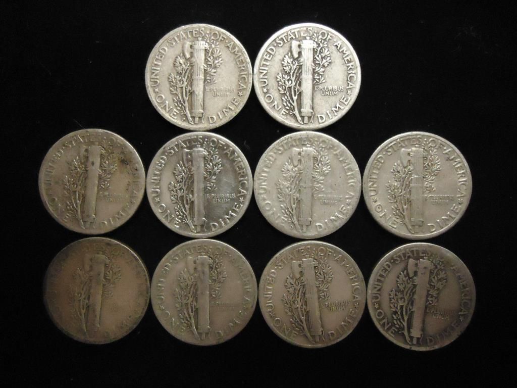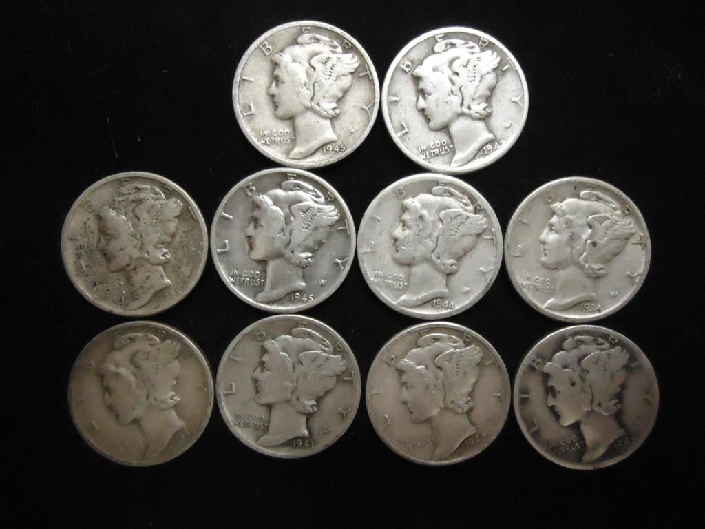 10 ASSORTED 1940'S MERCURY DIMES