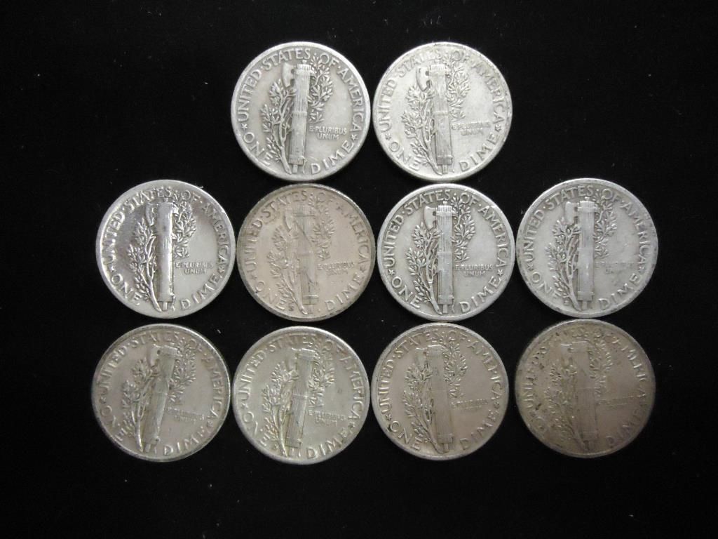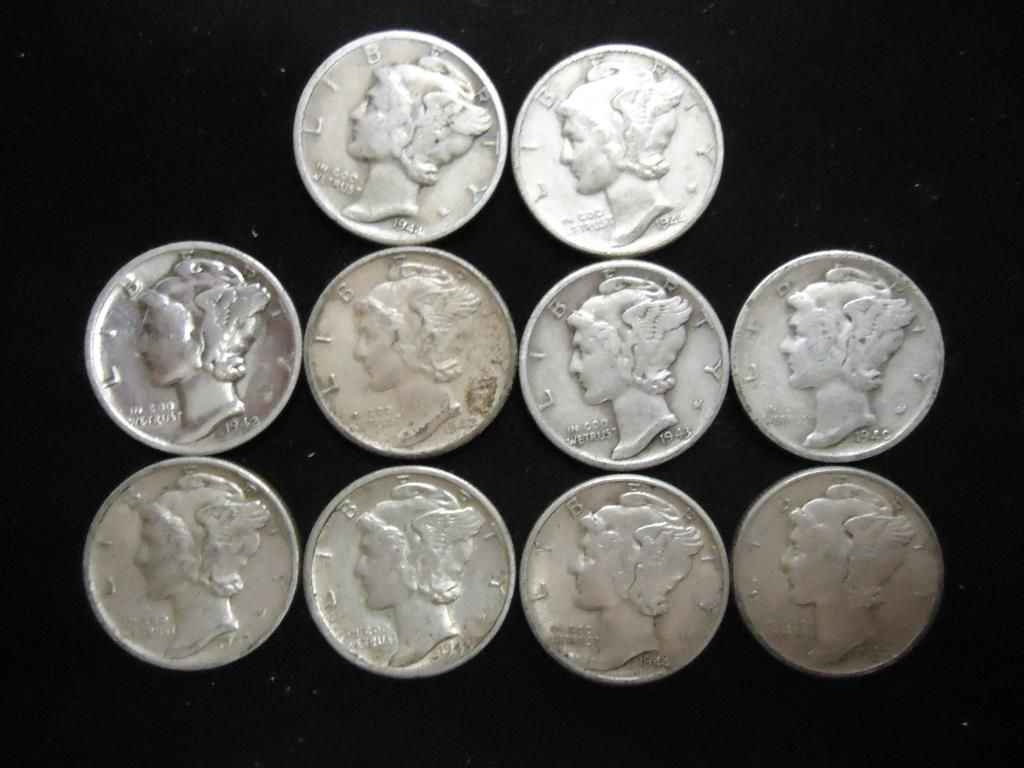 10 ASSORTED 1940'S MERCURY DIMES