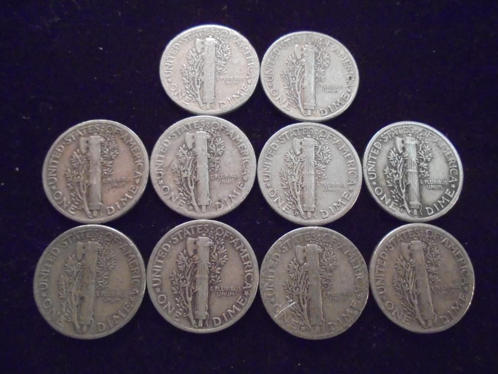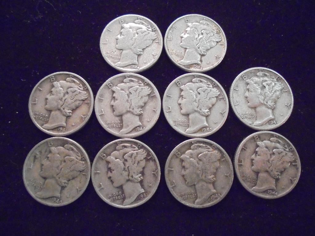 10 ASSORTED 1940'S MERCURY DIMES