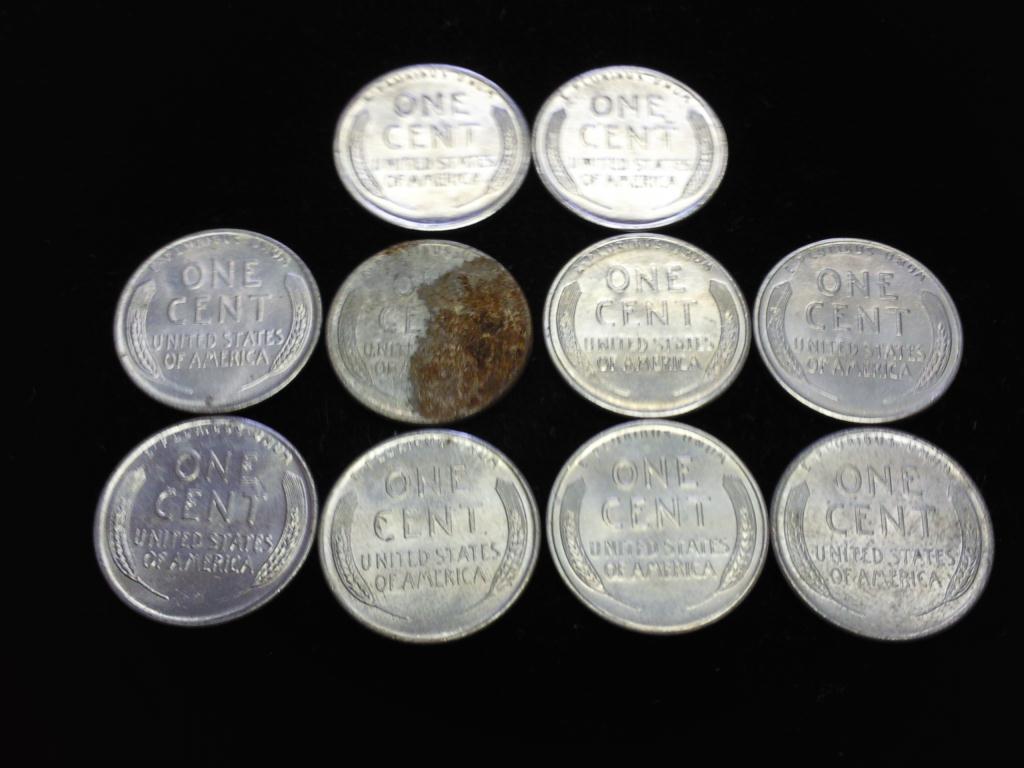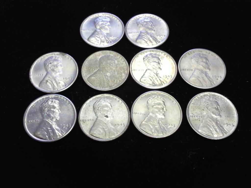 10 ASSORTED 1943 LINCOLN STEEL CENTS (EF-UNC)