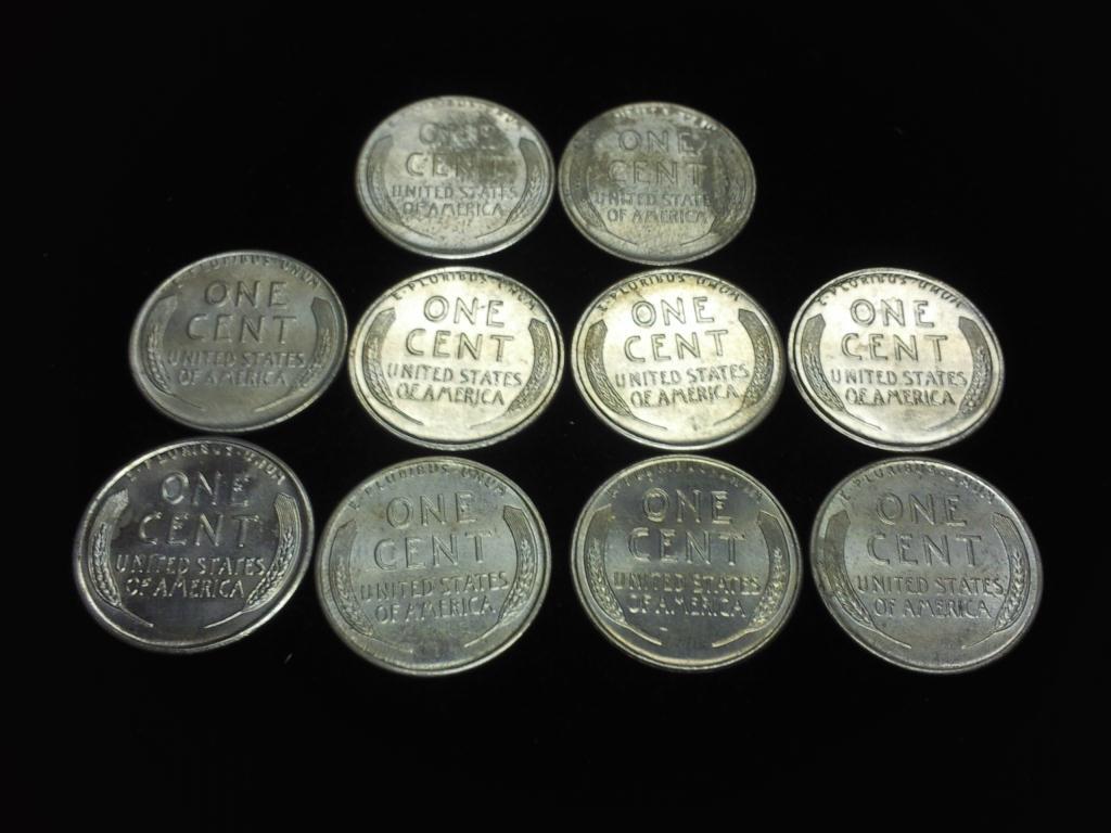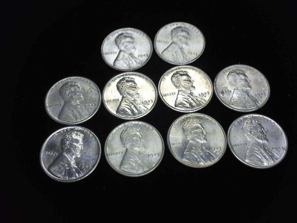 10 ASSORTED 1943 STEEL LINCOLN CENTS (UNC)