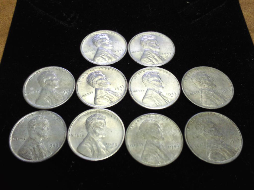 10 ASSORTED 1943 STEEL WAR CENTS (EF-UNC)