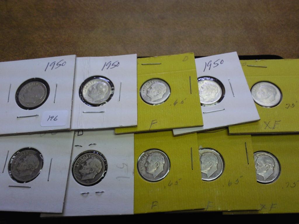 10 ASSORTED 1950'S ROOSEVELT DIMES SILVER