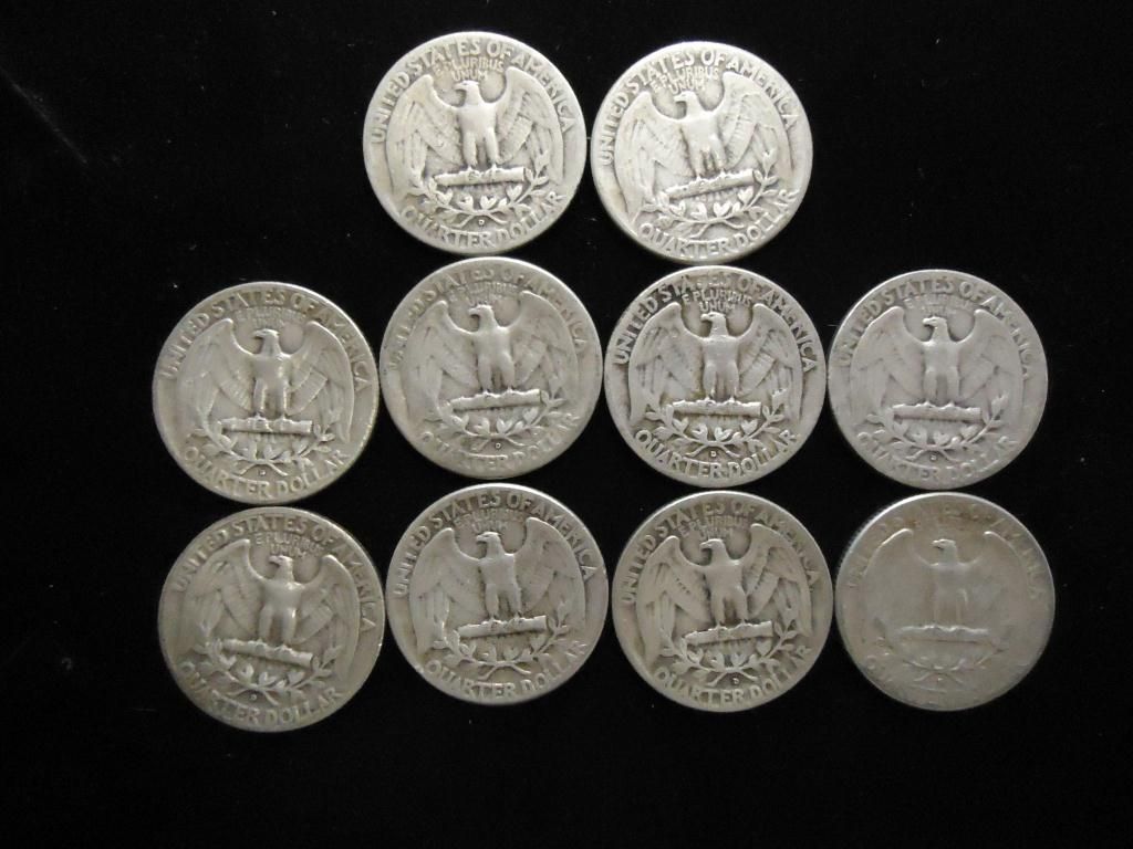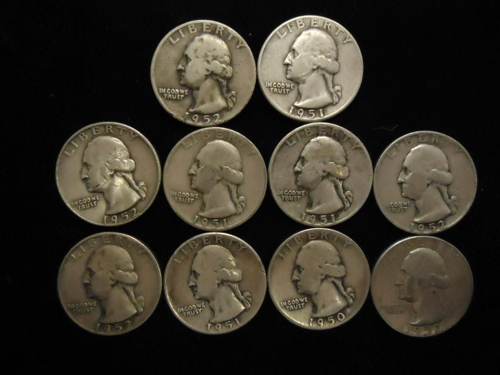 10 ASSORTED 1950'S WASHINGTON SILVER QUARTERS
