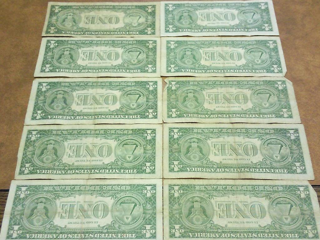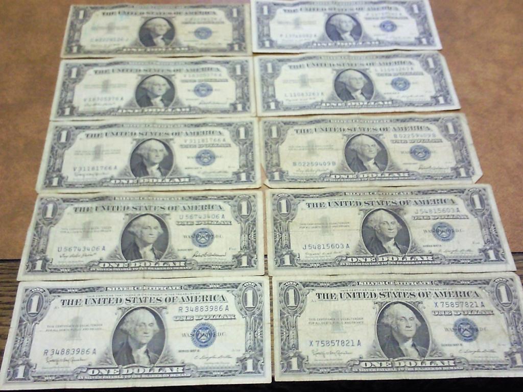10 ASSORTED 1957 $1 SILVER CERTIFICATES