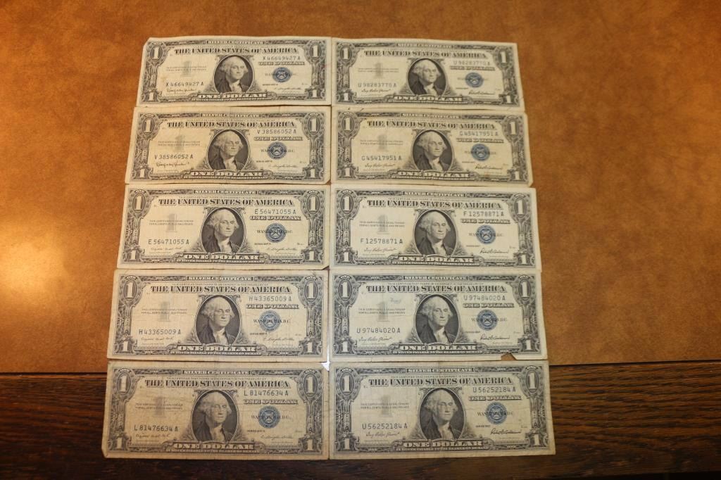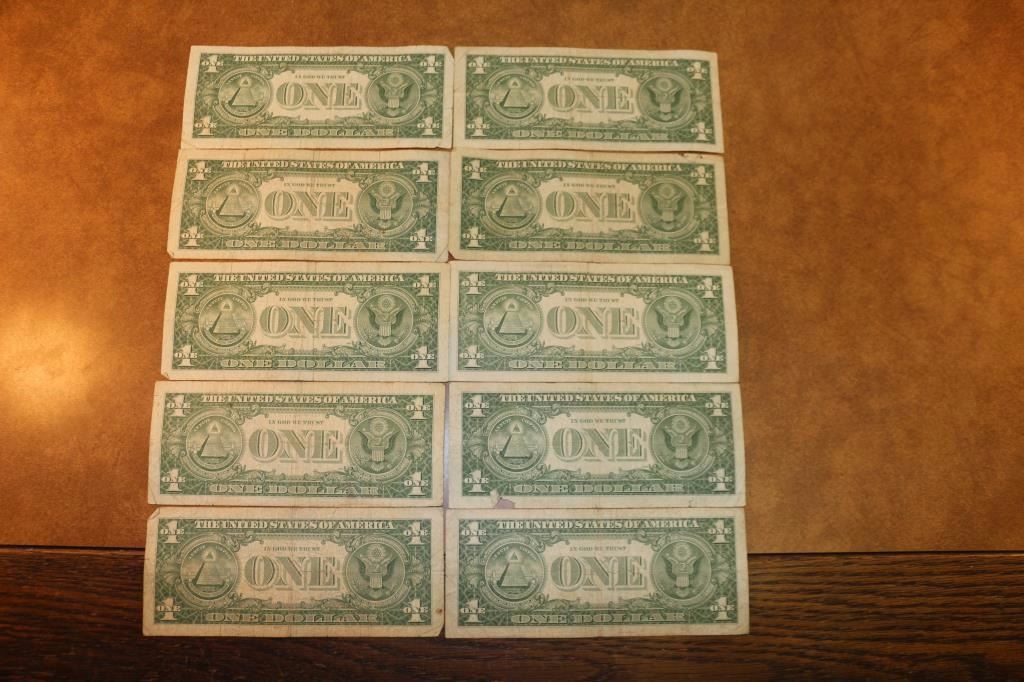 10 ASSORTED 1957 $1 SILVER CERTIFICATES