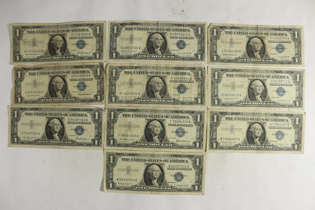 10 ASSORTED 1957 $1 SILVER CERTIFICATES