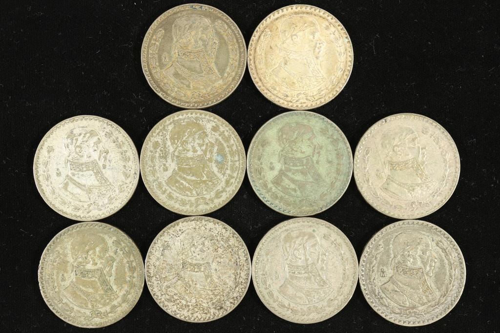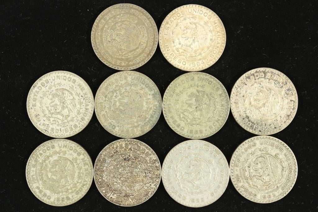 10 ASSORTED 1957-1964 MEXICO .100 SILVER PESOS
