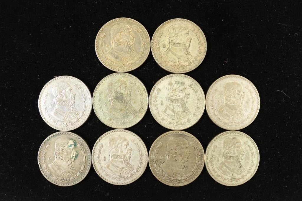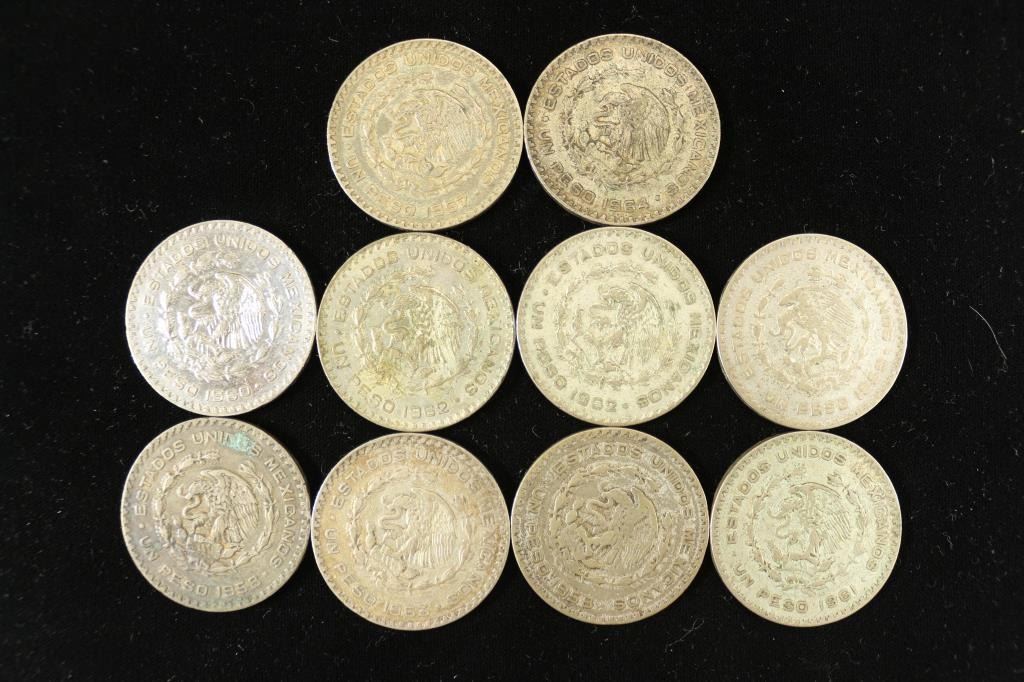 10 ASSORTED 1957-1964 MEXICO .100 SILVER PESOS