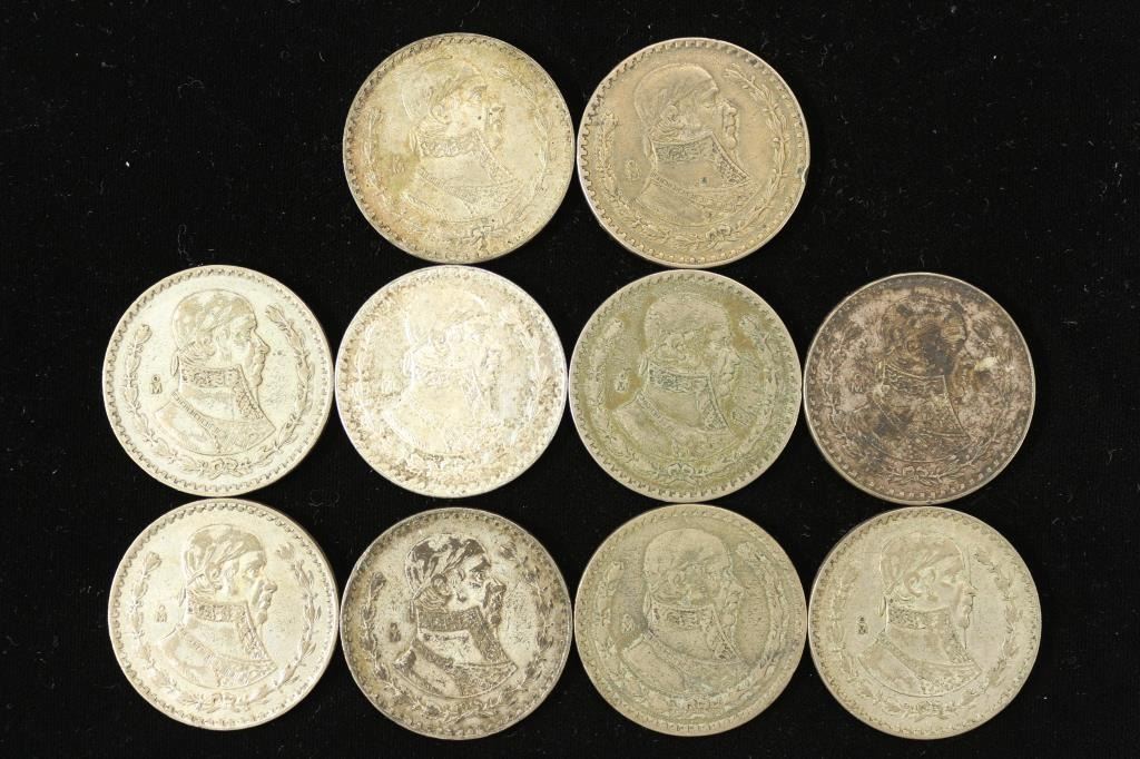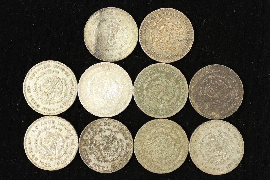 10 ASSORTED 1957-1966 MEXICO .100 SILVER PESOS