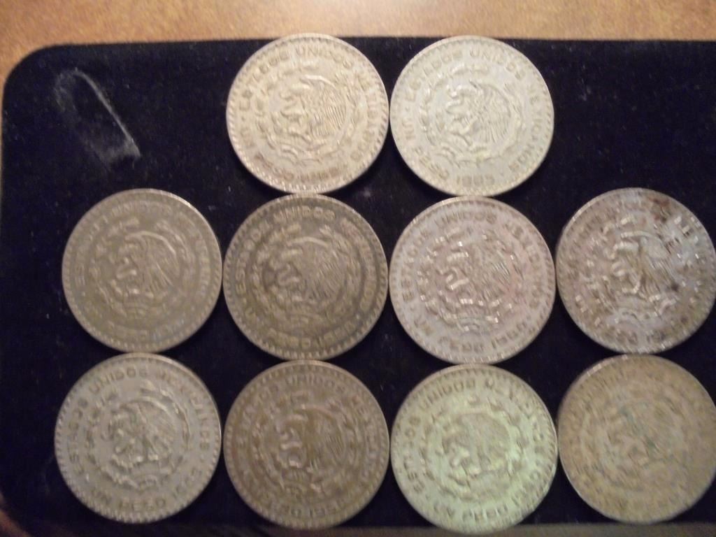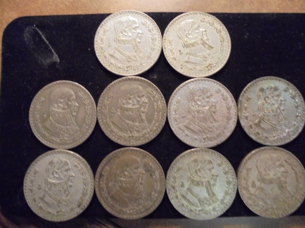 10 ASSORTED 1957-1966 MEXICO SILVER PESOS