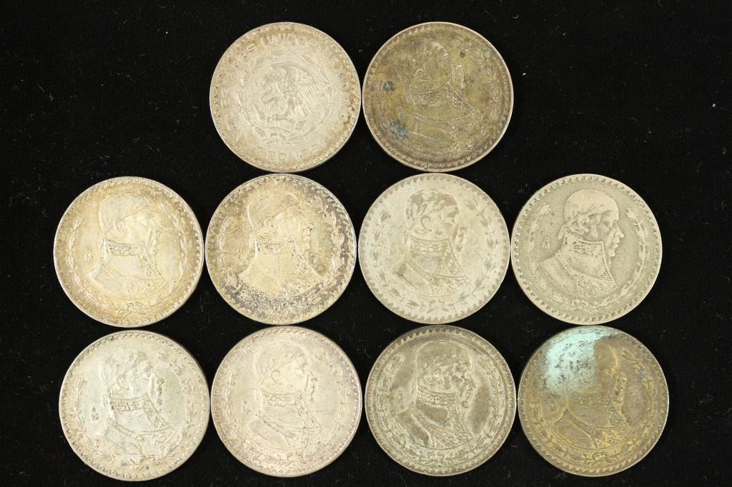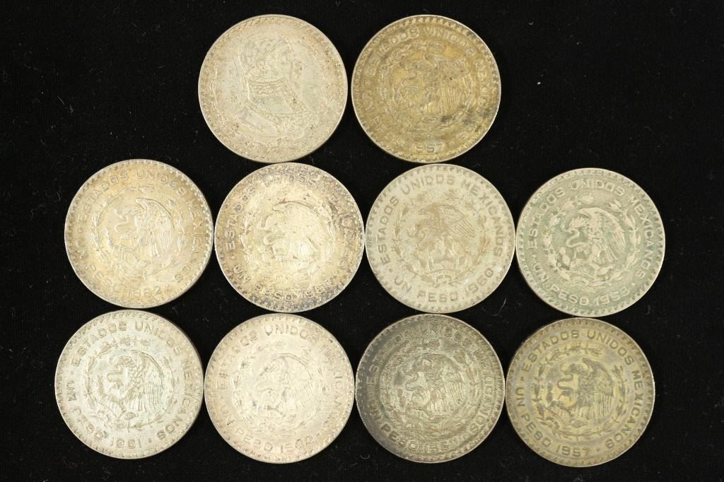 10 ASSORTED 1957-1967 MEXICO .100 SILVER PESOS
