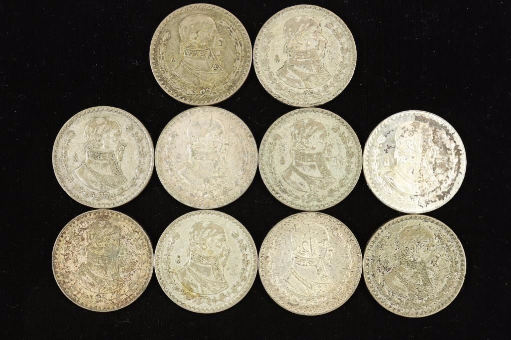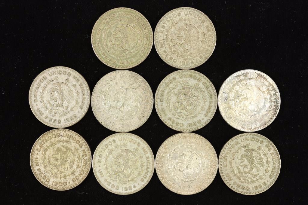 10- ASSORTED 1958-1964 MEXICO SILVER .100 PESOS
