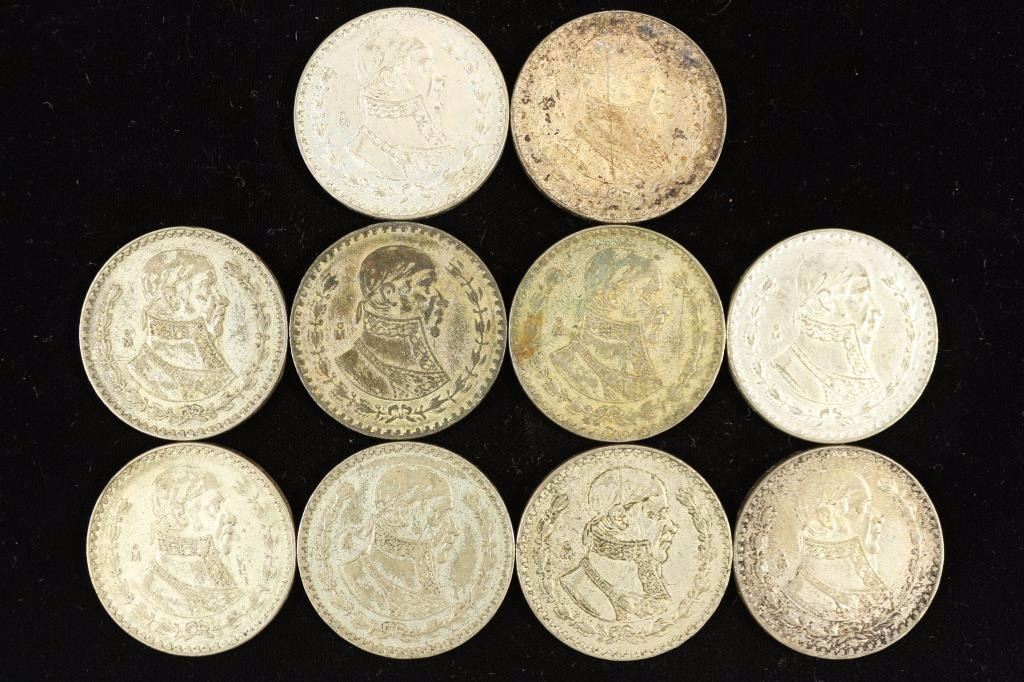 10 ASSORTED 1959-1966 MEXICO .100 SILVER PESOS