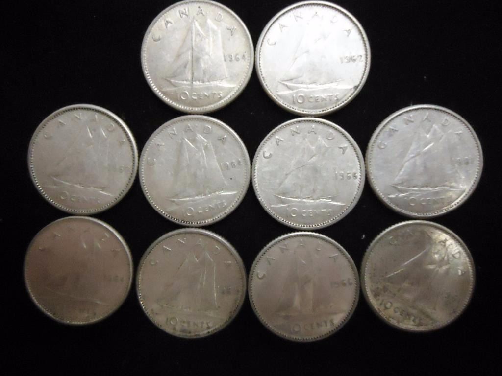 10 ASSORTED 1960'S CANADA SILVER 10 CENTS