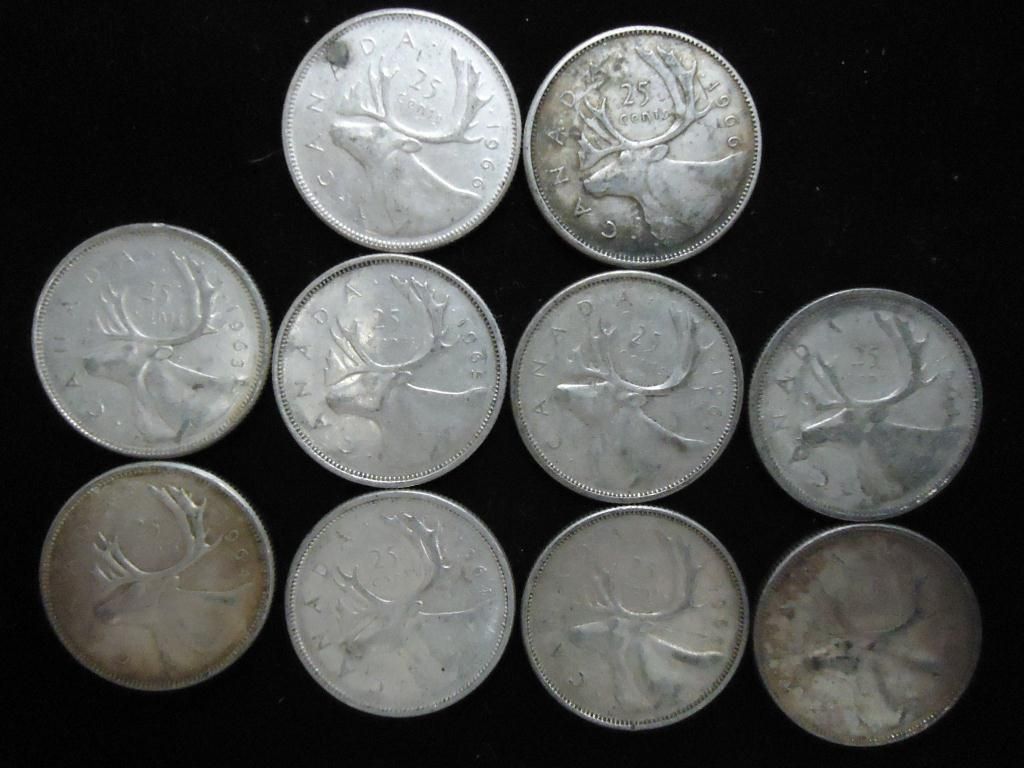 10 ASSORTED 1960'S CANADA SILVER 25 CENTS