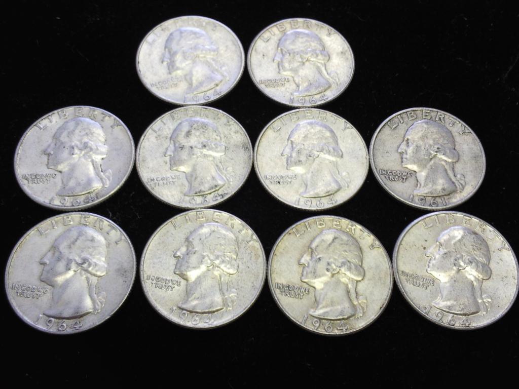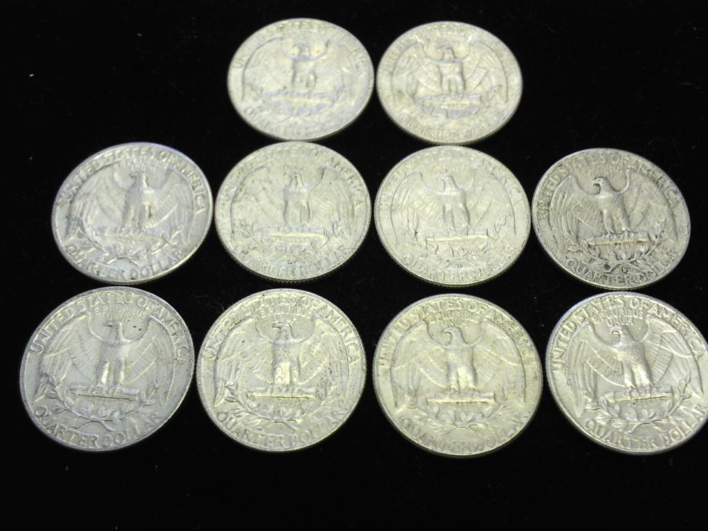 10 ASSORTED 1960'S WASHINGTON SILVER QUARTERS