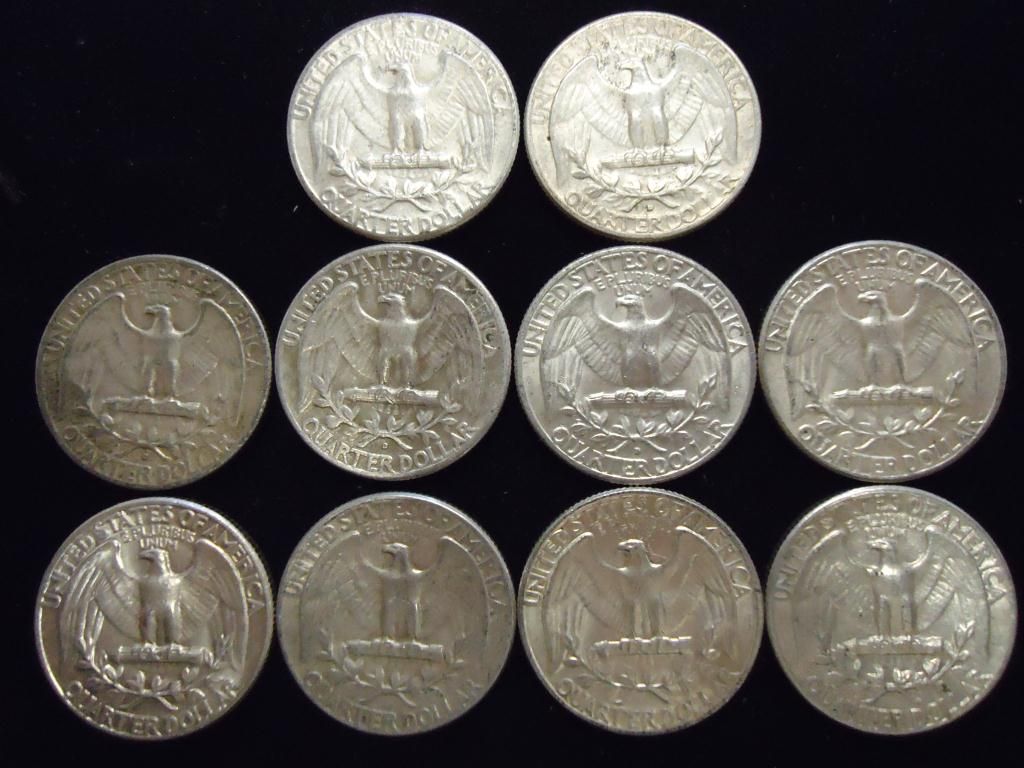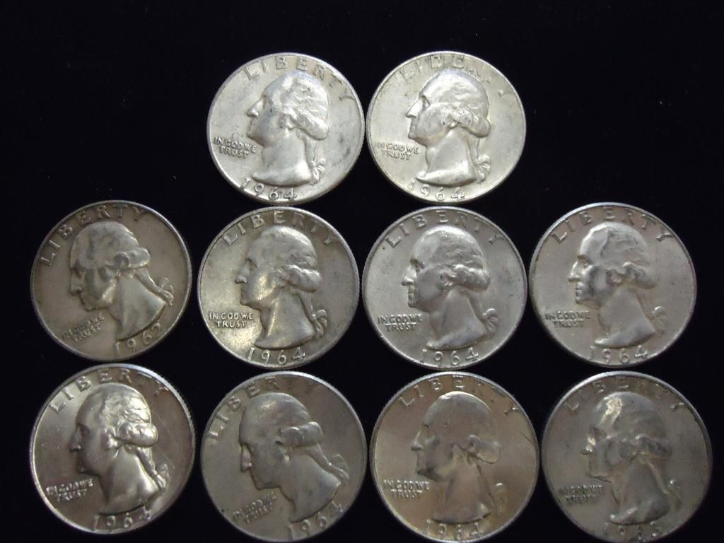 10 ASSORTED 1960'S WASHINGTON SILVER QUARTERS