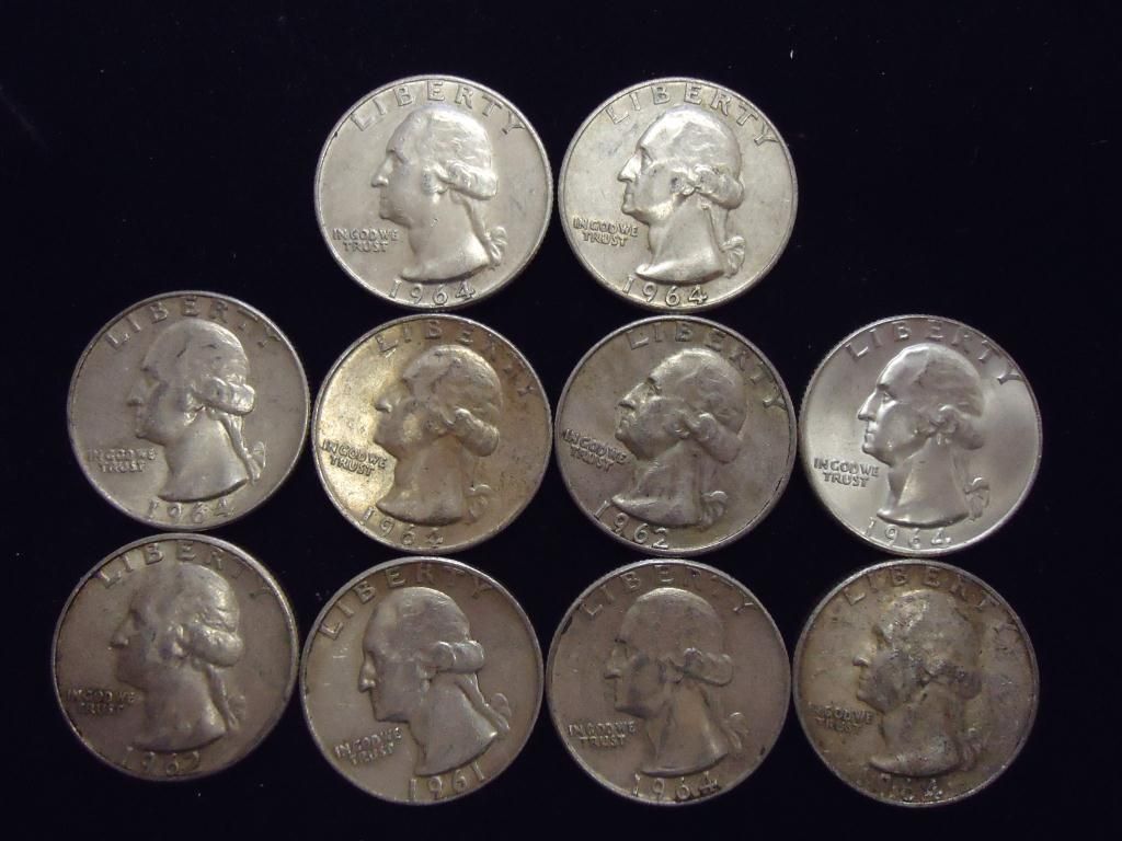 10 ASSORTED 1960'S WASHINGTON SILVER QUARTERS