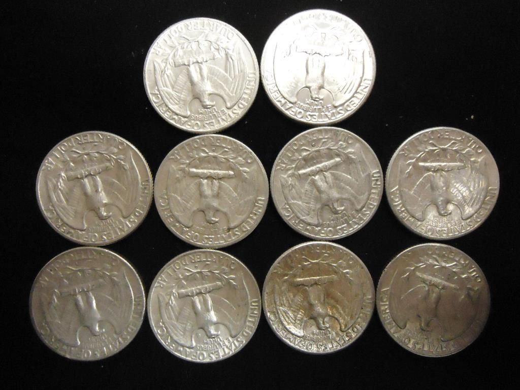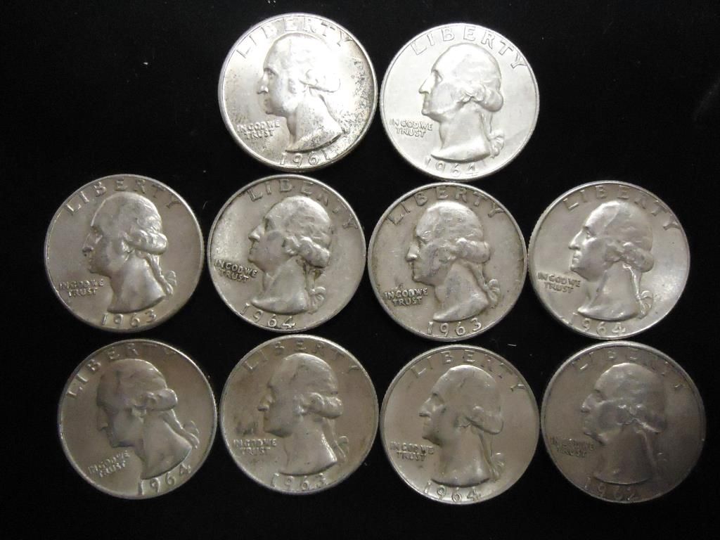 10 ASSORTED 1960'S WASHINGTON SILVER QUARTERS