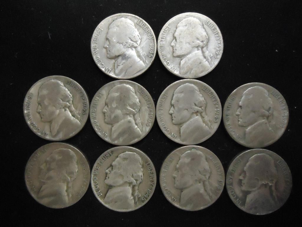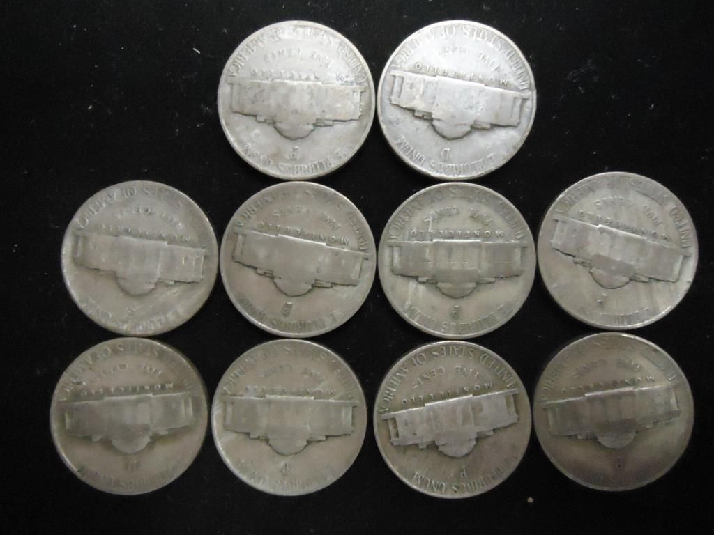 10 ASSORTED 35% SILVER JEFFERSON WAR NICKELS