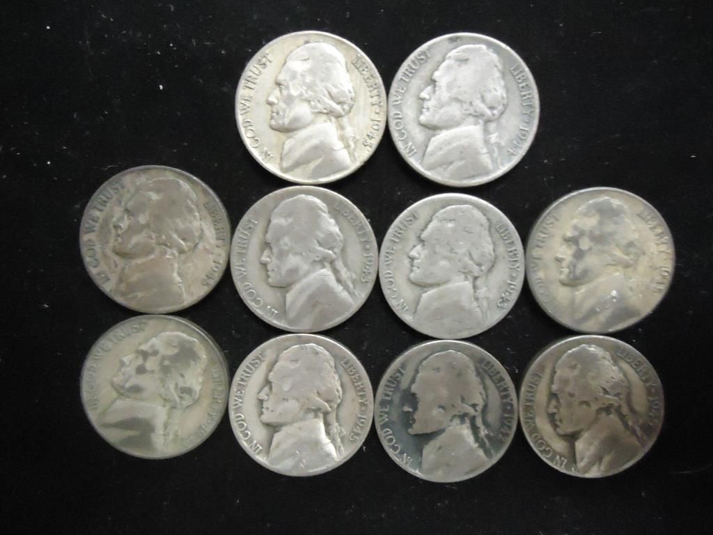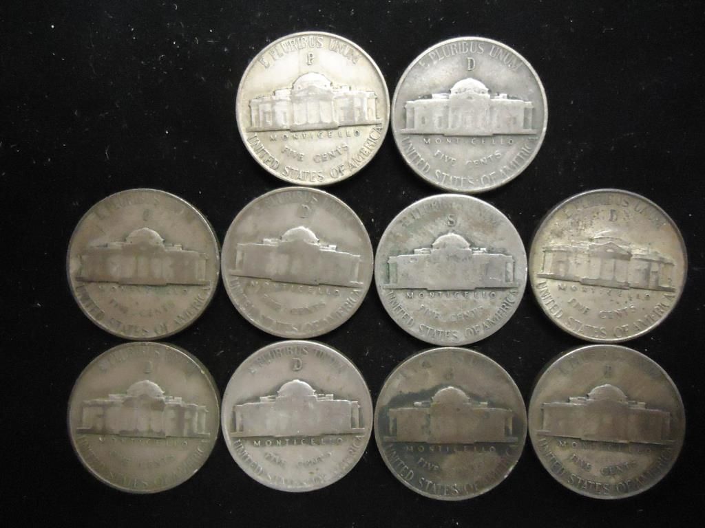 10 ASSORTED 35% SILVER JEFFERSON WAR NICKELS