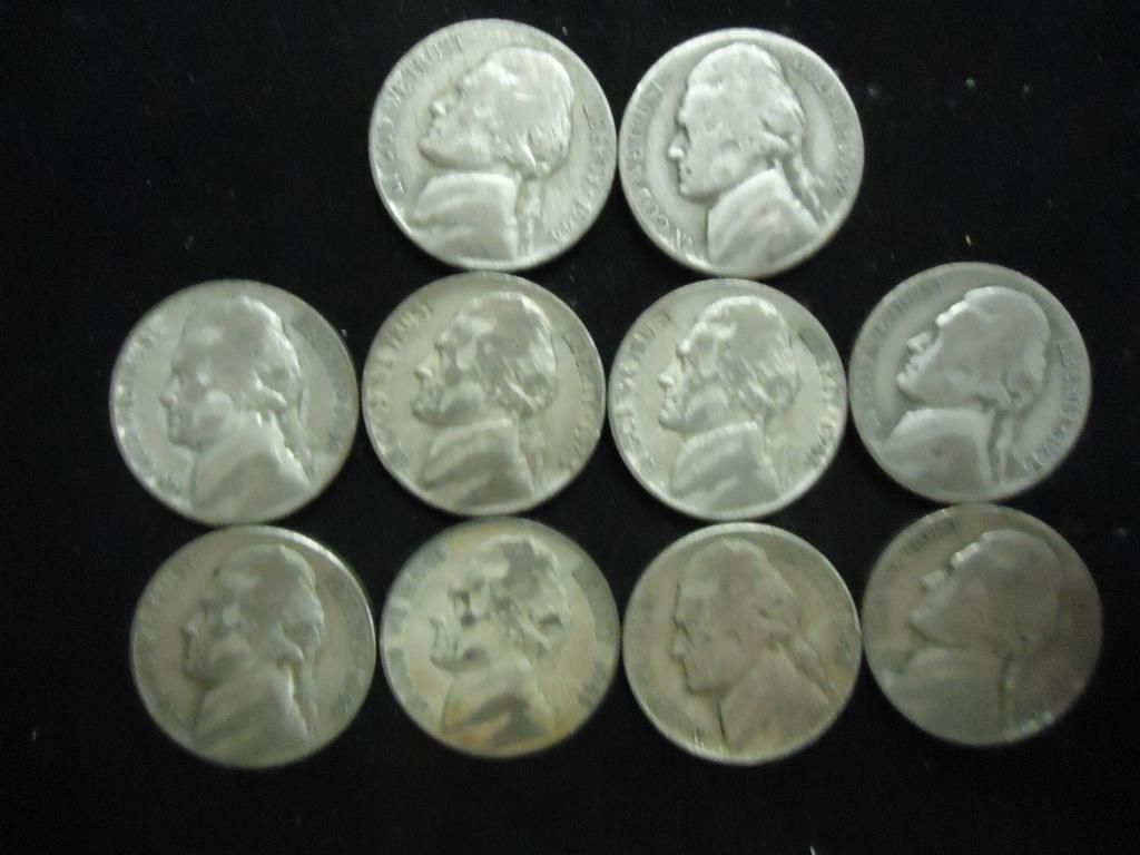 10 ASSORTED 35% SILVER JEFFERSON WAR NICKELS