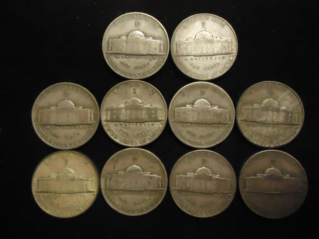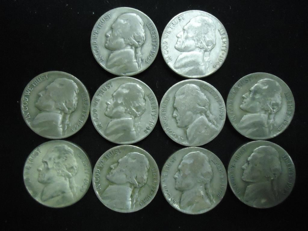 10 ASSORTED 35% SILVER JEFFERSON WAR NICKELS