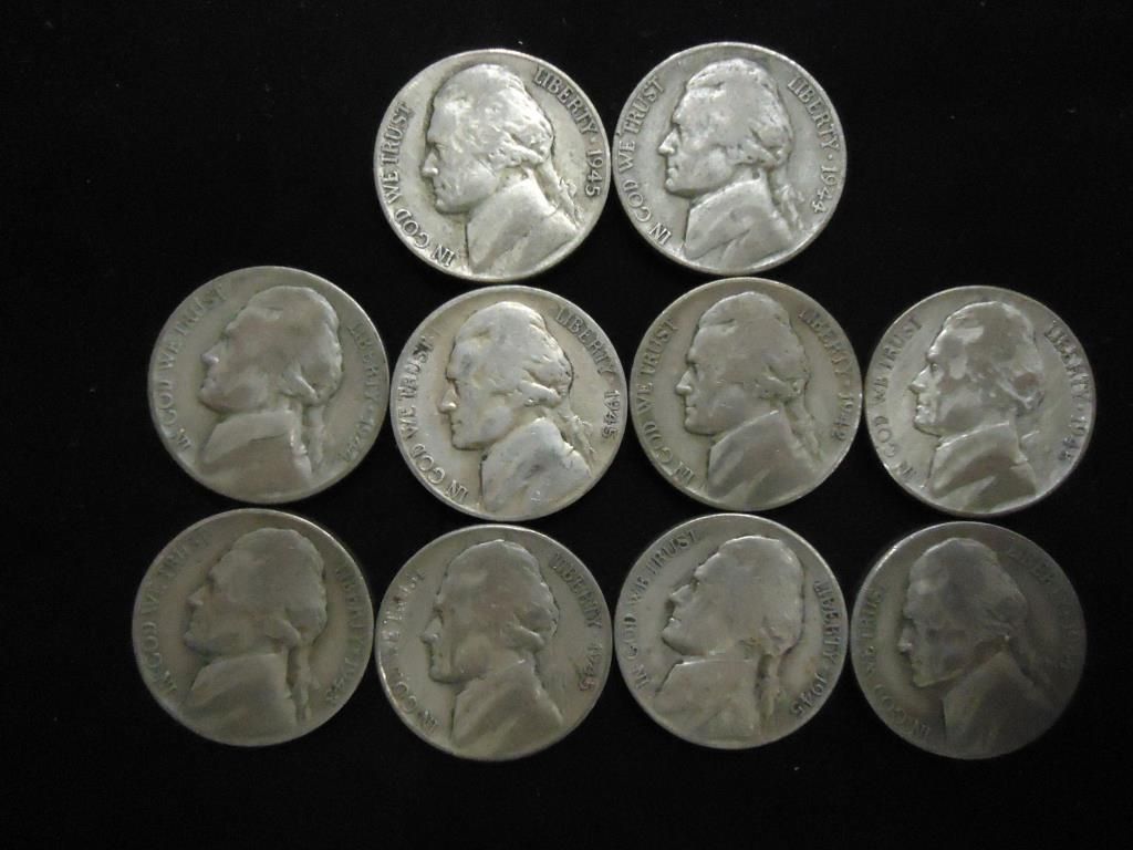 10 ASSORTED 35% SILVER JEFFERSON WAR NICKELS