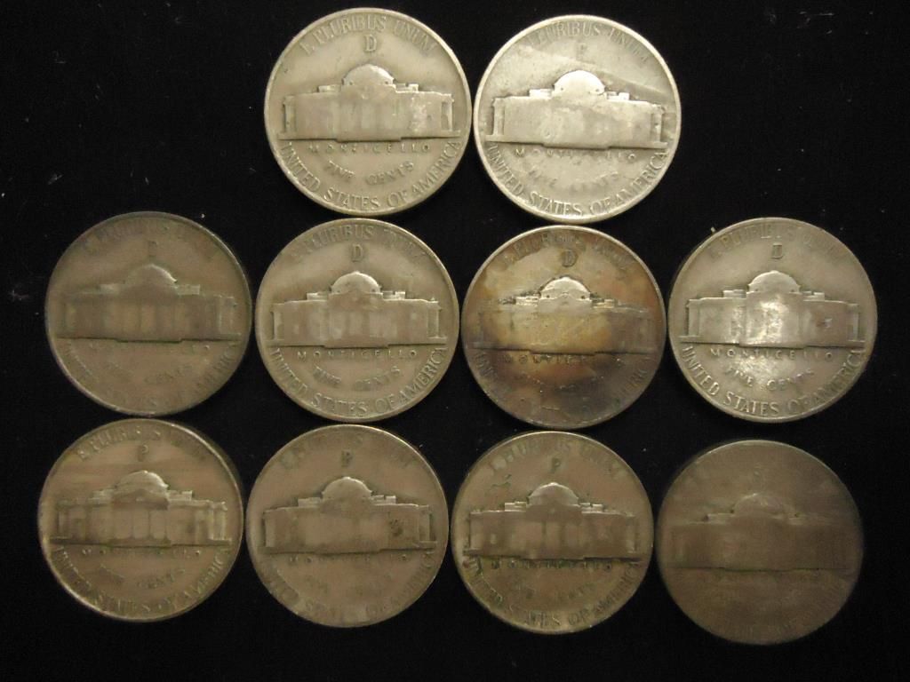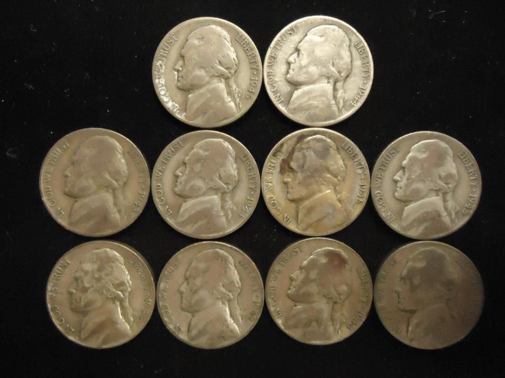 10 ASSORTED 35% SILVER JEFFERSON WAR NICKELS