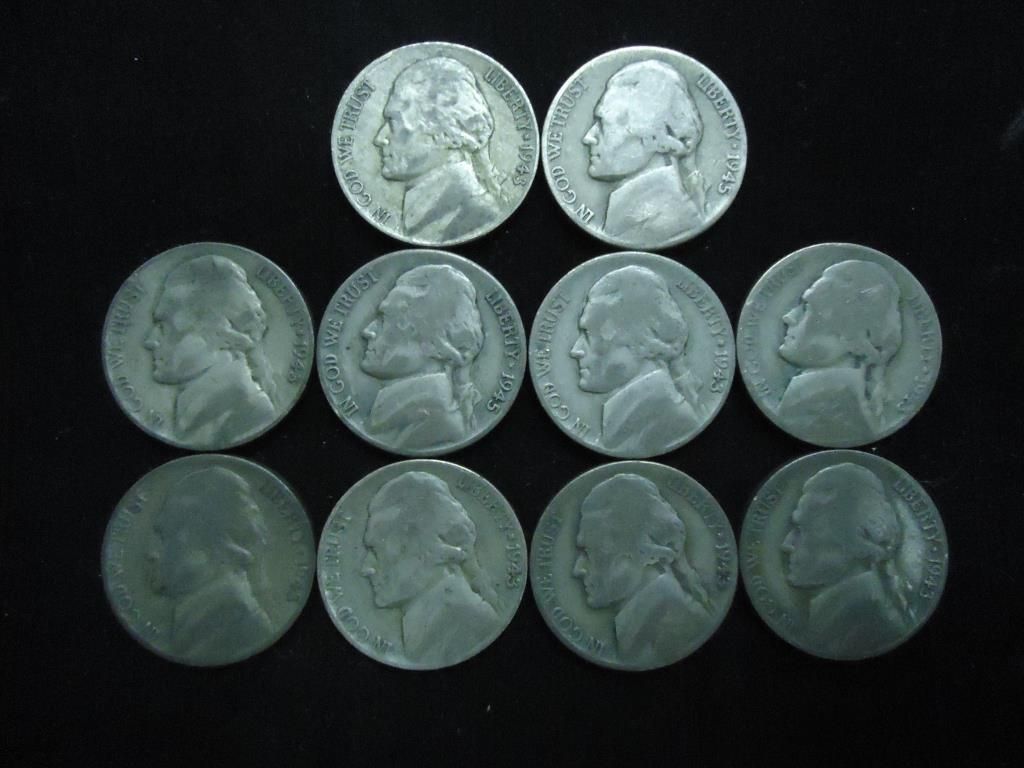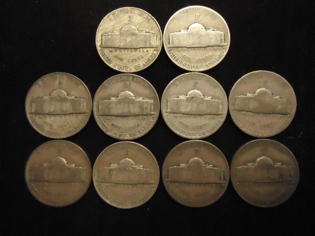 10 ASSORTED 35% SILVER JEFFERSON WAR NICKELS