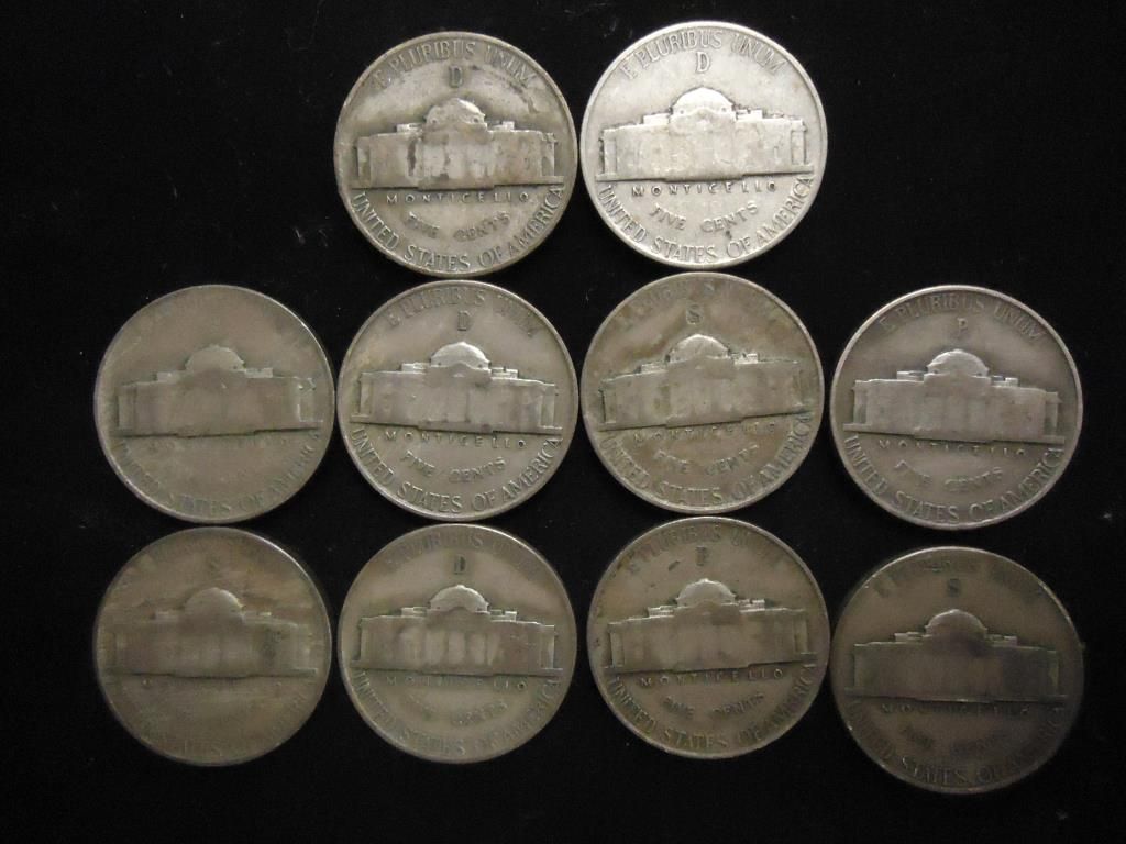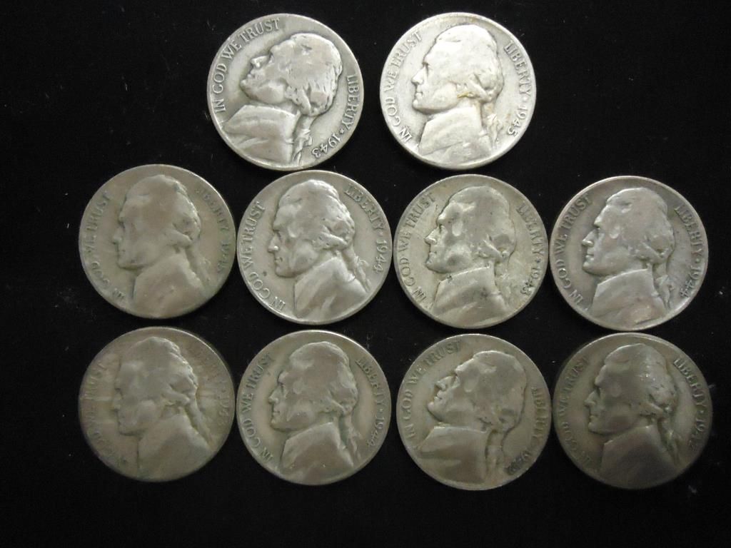 10 ASSORTED 35% SILVER JEFFERSON WAR NICKELS