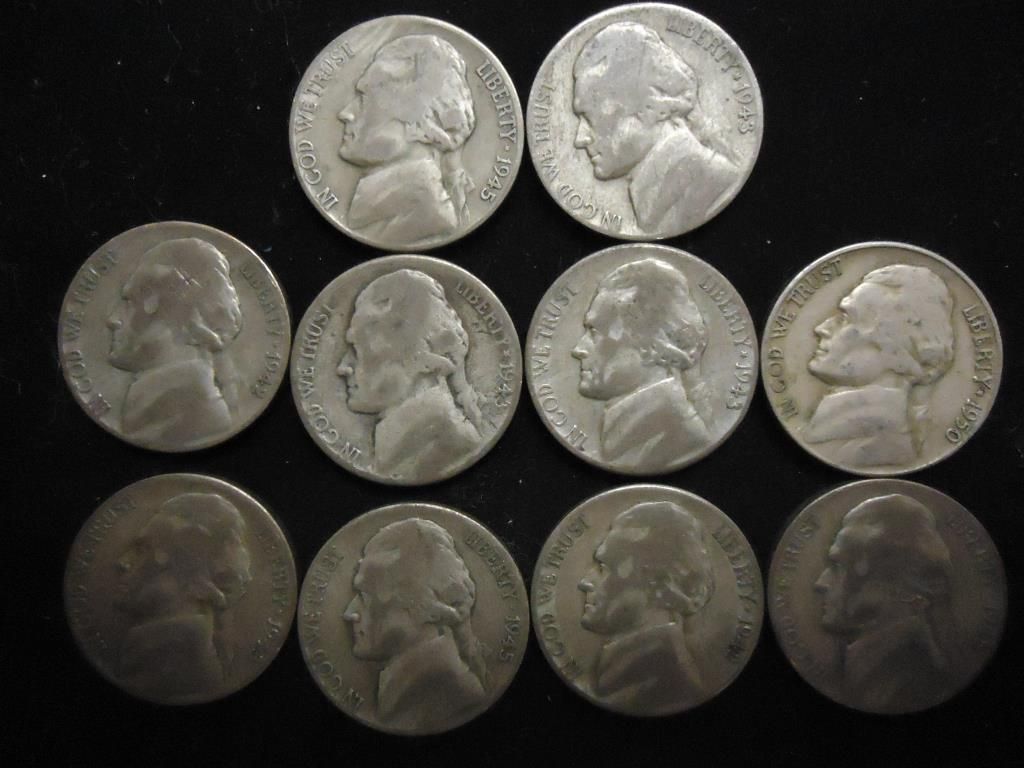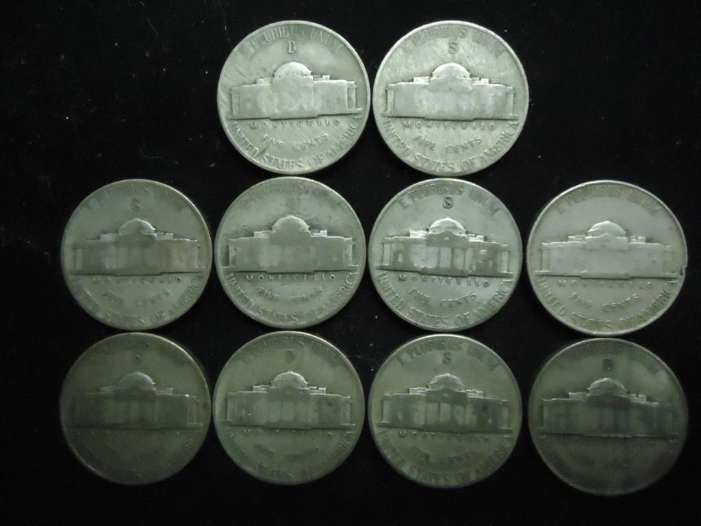 10 ASSORTED 35% SILVER JEFFERSON WAR NICKELS