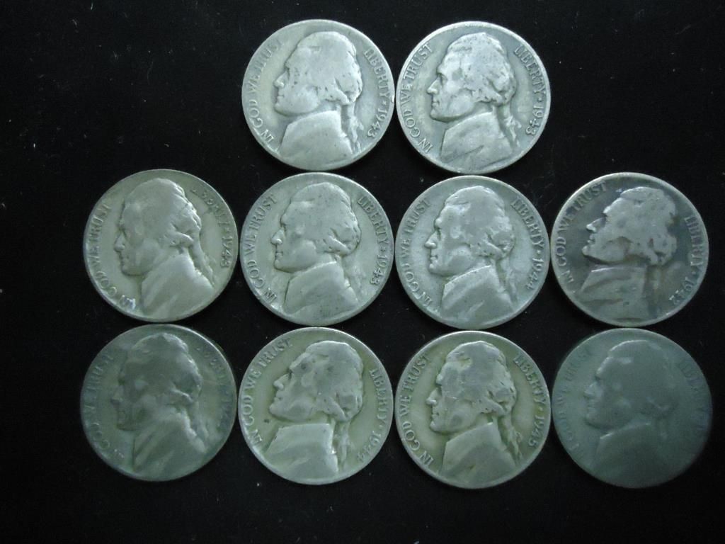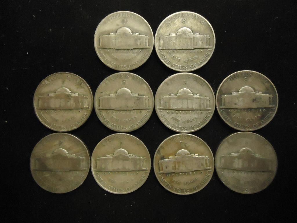 10 ASSORTED 35% SILVER JEFFERSON WAR NICKELS