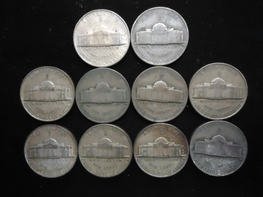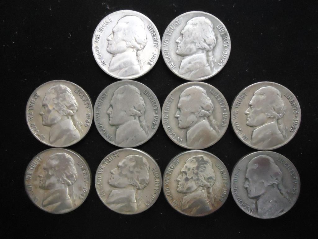10 ASSORTED 35% SILVER JEFFERSON WAR NICKELS