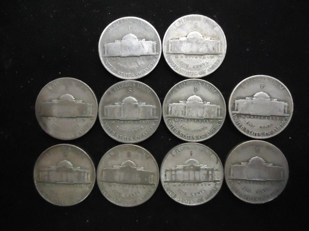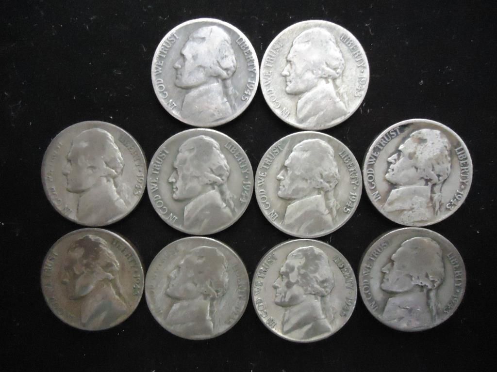 10 ASSORTED 35% SILVER JEFFERSON WAR NICKELS