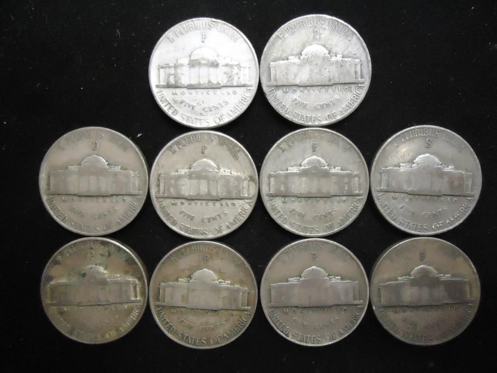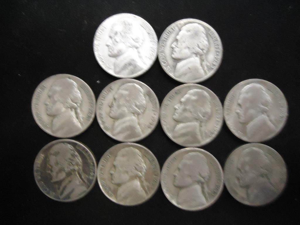 10 ASSORTED 35% SILVER JEFFERSON WAR NICKELS