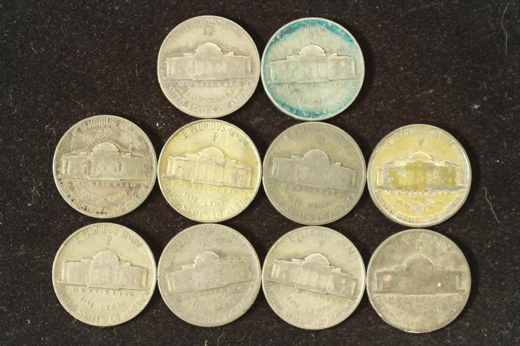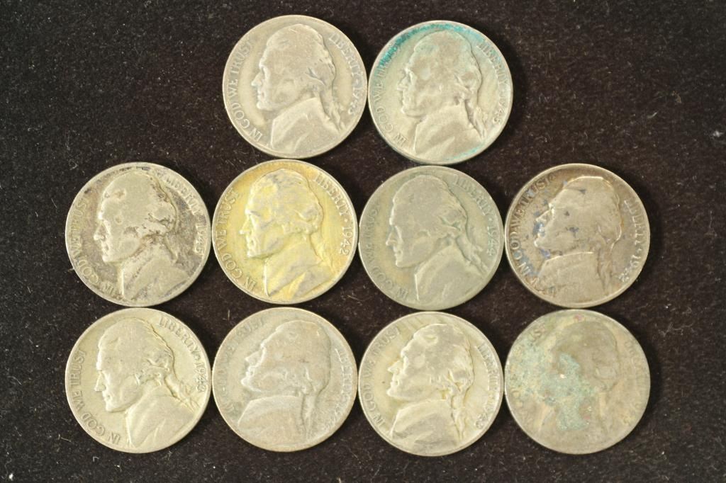 10 ASSORTED 35% SILVER JEFFERSON WAR NICKELS