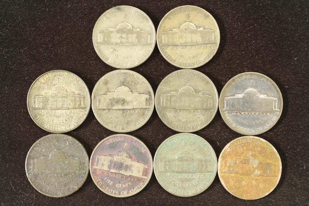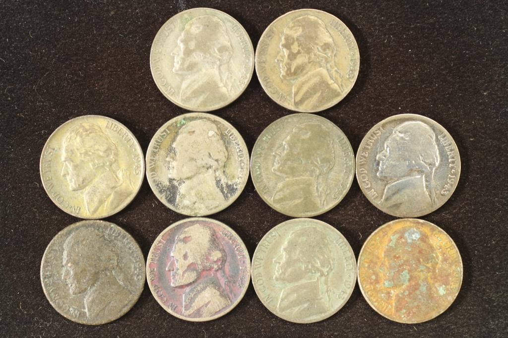 10 ASSORTED 35% SILVER JEFFERSON WAR NICKELS