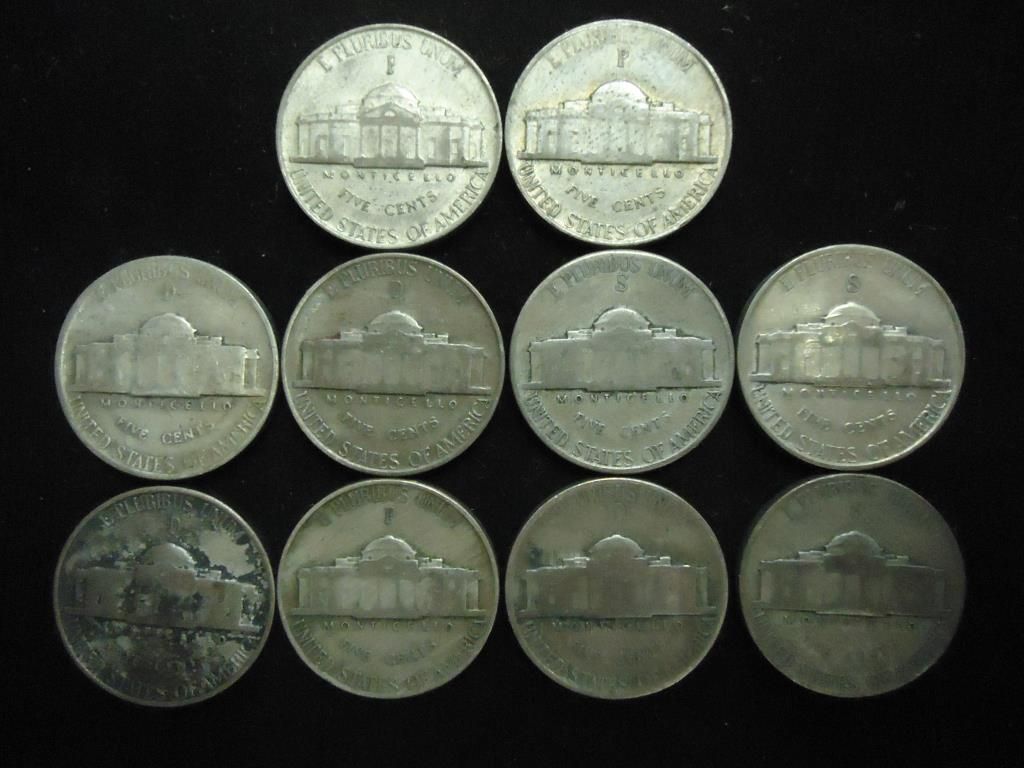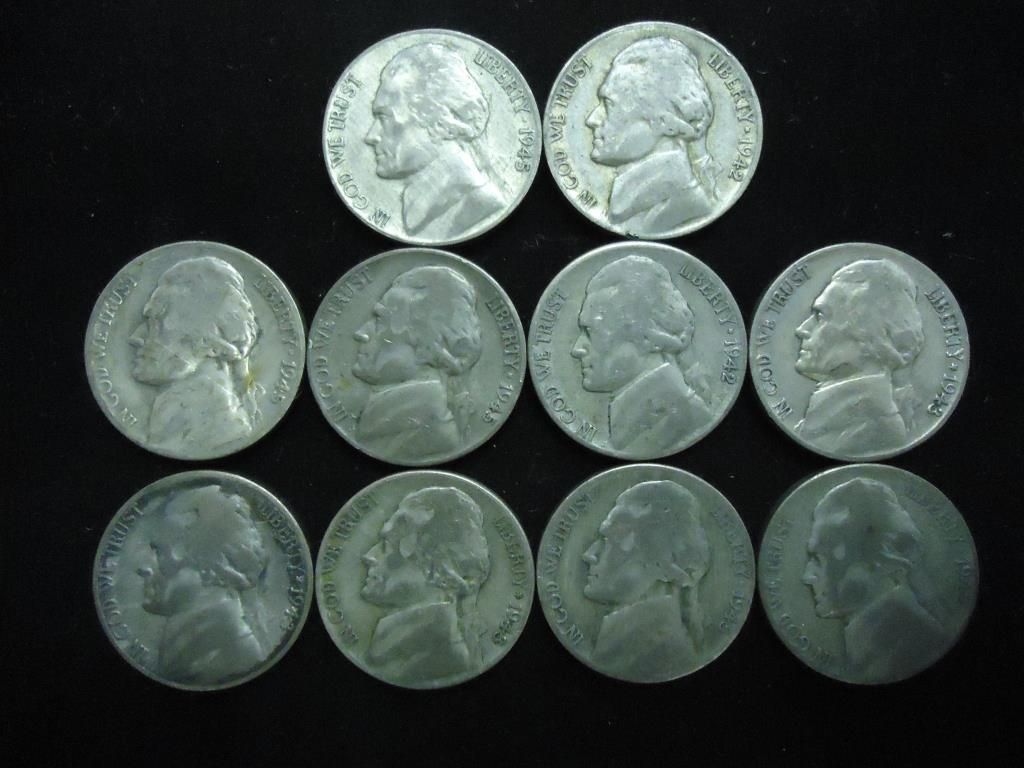 10 ASSORTED 35% SILVER JEFFERSON WAR NICKEL
