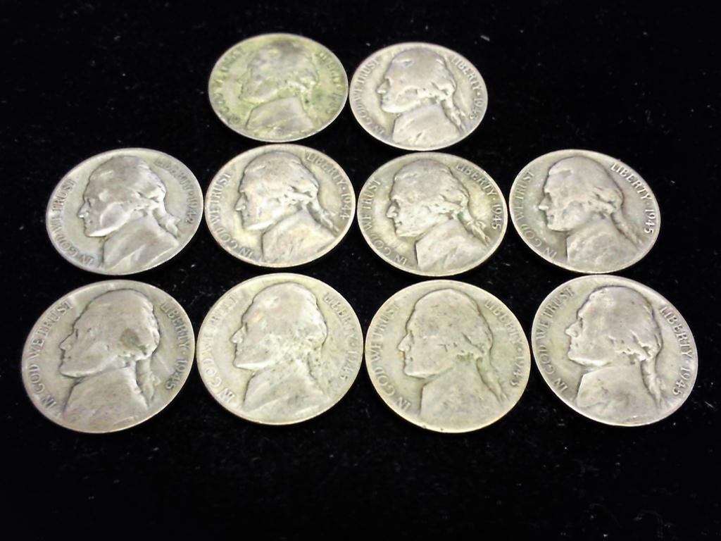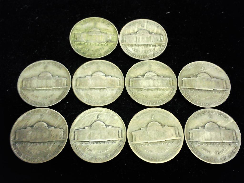 10 ASSORTED 40% SILVER JEFFERSON WAR NICKELS
