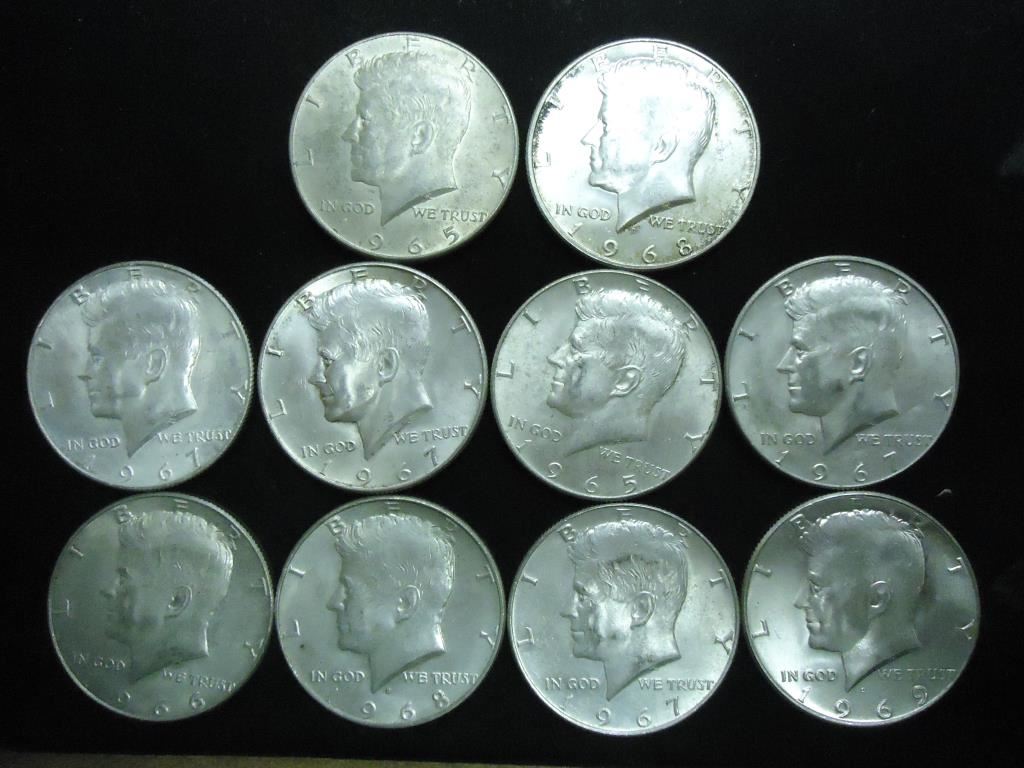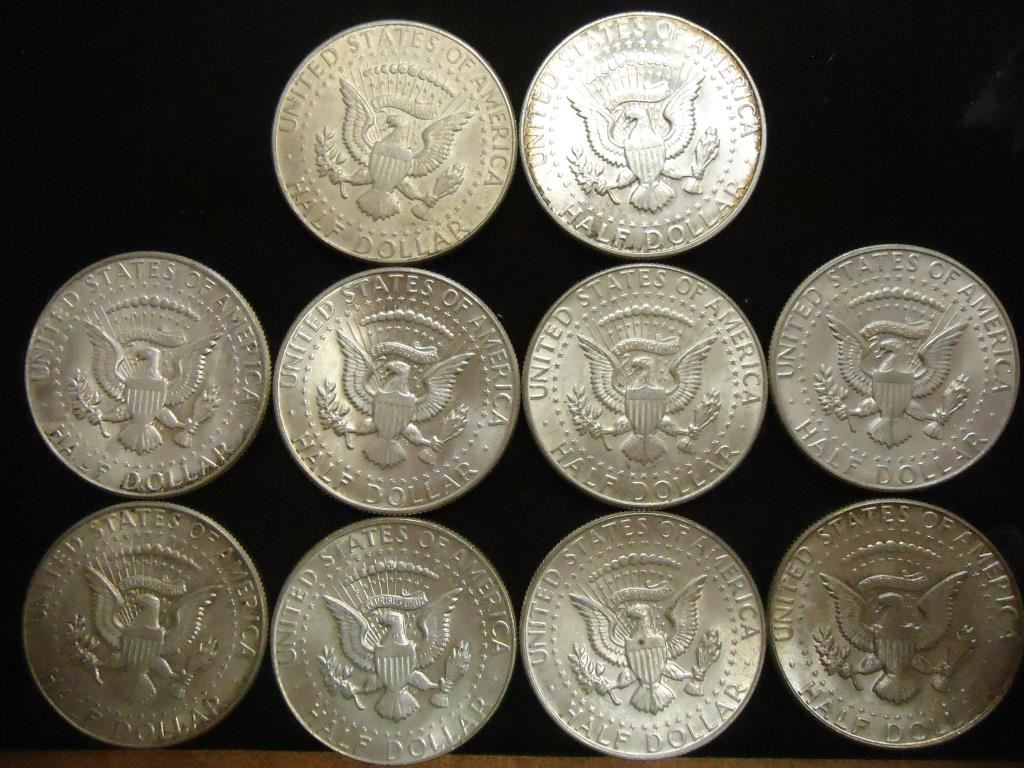 10 ASSORTED 40% SILVER JOHN F. KENNEDY HALVES